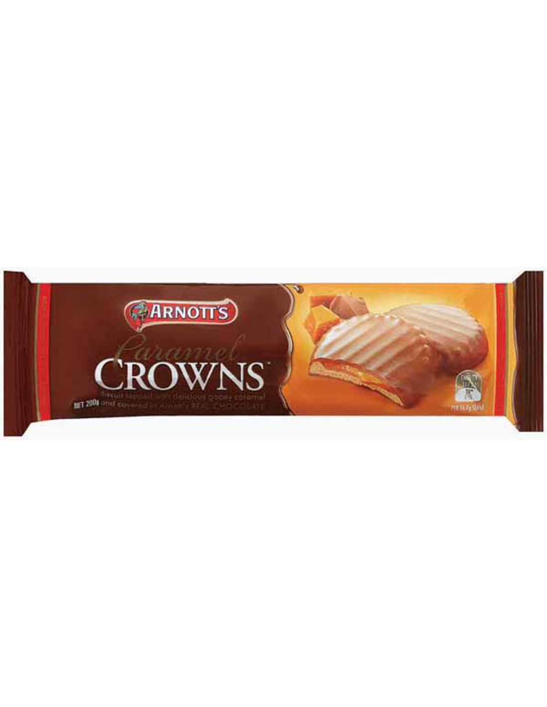 Arnott's Caramel Crowns is delicious biscuit, gooey caramel and Arnott's Real Chocolate, made from the finest cocoa ingredients and Australian natural milk products. Carefully combined to create your perfect indulgence.