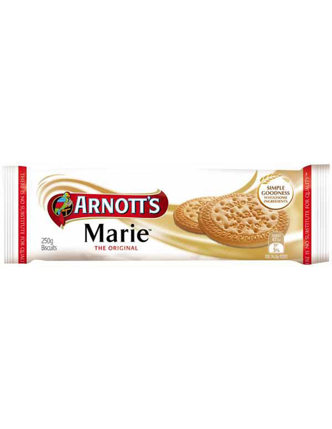 Arnott's Marie Biscuits is a light and crisp vanilla baked biscuit with sweet golden syrup notes. It's an absolute joy to savour with a cuppa.