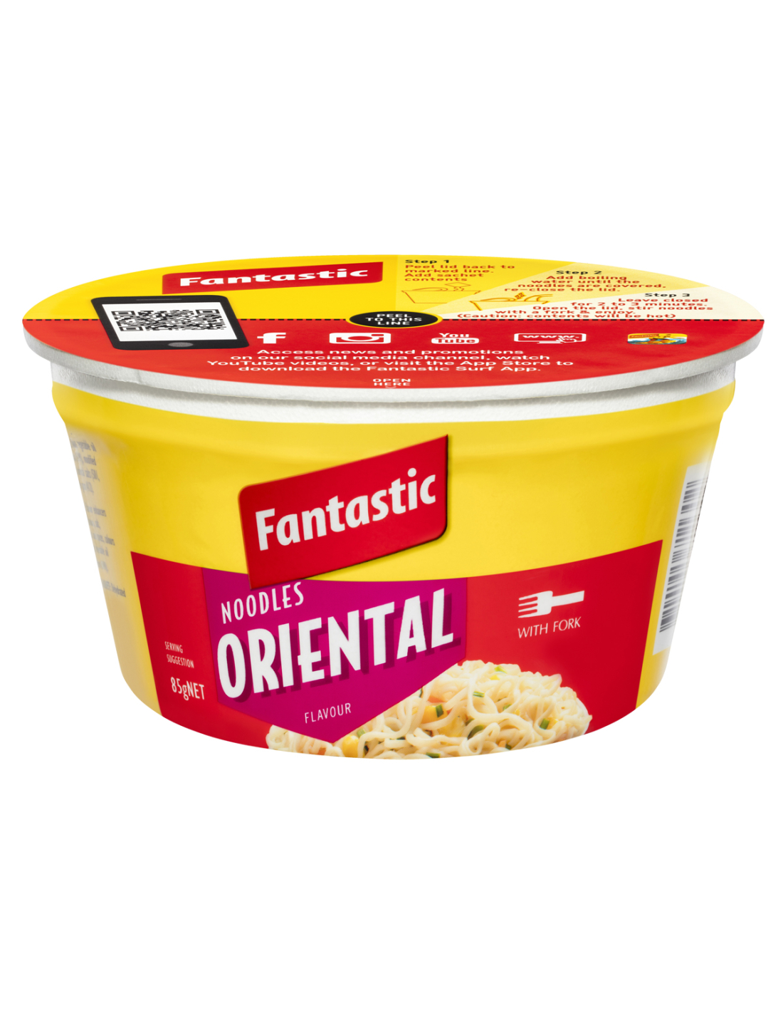 Fantastic Bowl Noodles are the perfect snack or meal option for after school, work, camping or home. Ready in 3 minutes with a fork included, Fantastic Bowl Noodles are convenient and quick to prepare.