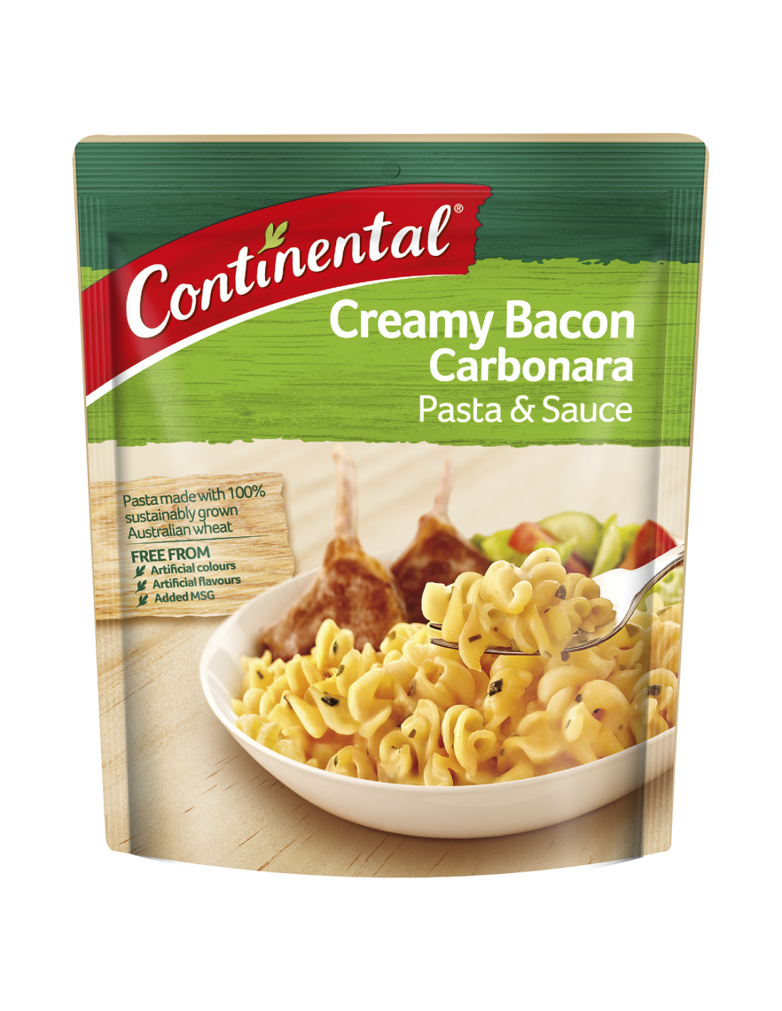 Continental has a range of delicious gourmet pasta, rice and risotto flavours to help you create an easy and delicious meal any night of the week. Create the taste of Italy in your very kitchen with Continental Classic Creamy Bacon Carbonara Pasta & Sauce, it’s sure to become a classic in your weekly repertoire. Pasta & Sauces are available in a standard size or a value pack.