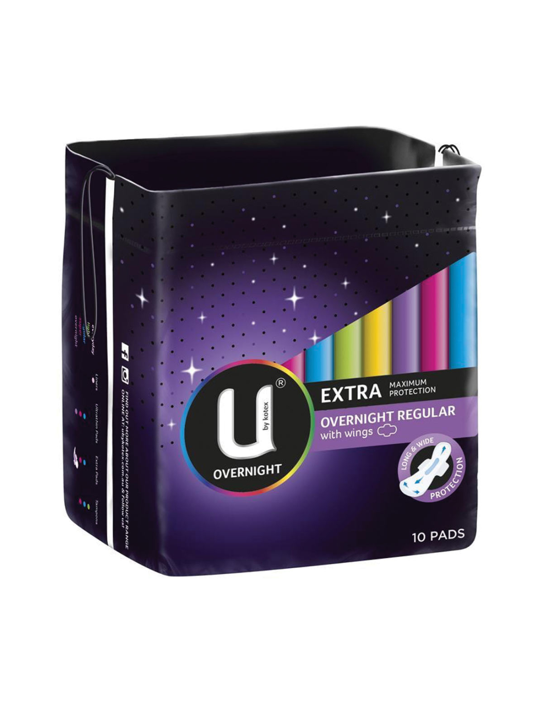 U by Kotex® Overnight Extra Pads provide mega protection that hugs your body for ultimate comfort. Overnight is just a little bit longer, a fraction wider and equipped with Anti-Leak Guards (side and back) for helping prevent leakage when you're lying down. So enjoy that beauty snooze without a worry.