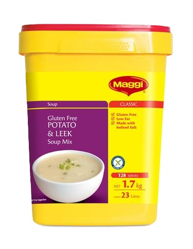 MAGGI Gluten Free Potato and Leek Soup Mix combines the satisfying taste of potatoes with onion and leek to create a delicate soup that is quick and easy to prepare.
