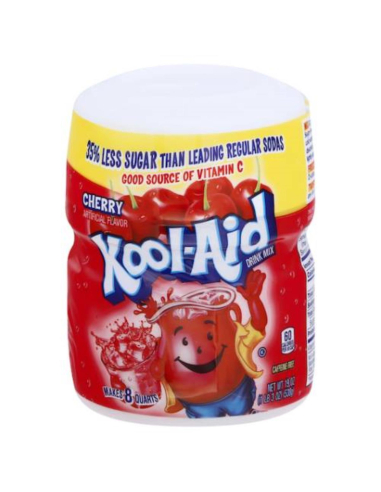 Ingredients: sucre, fructosa, àcid cítric, conté menys del 2% de l'àcid ascòrbic (vitamina C), sabor artificial, fosfat de calci, color artificial, vermell 40, BHT (conserva la frescor).