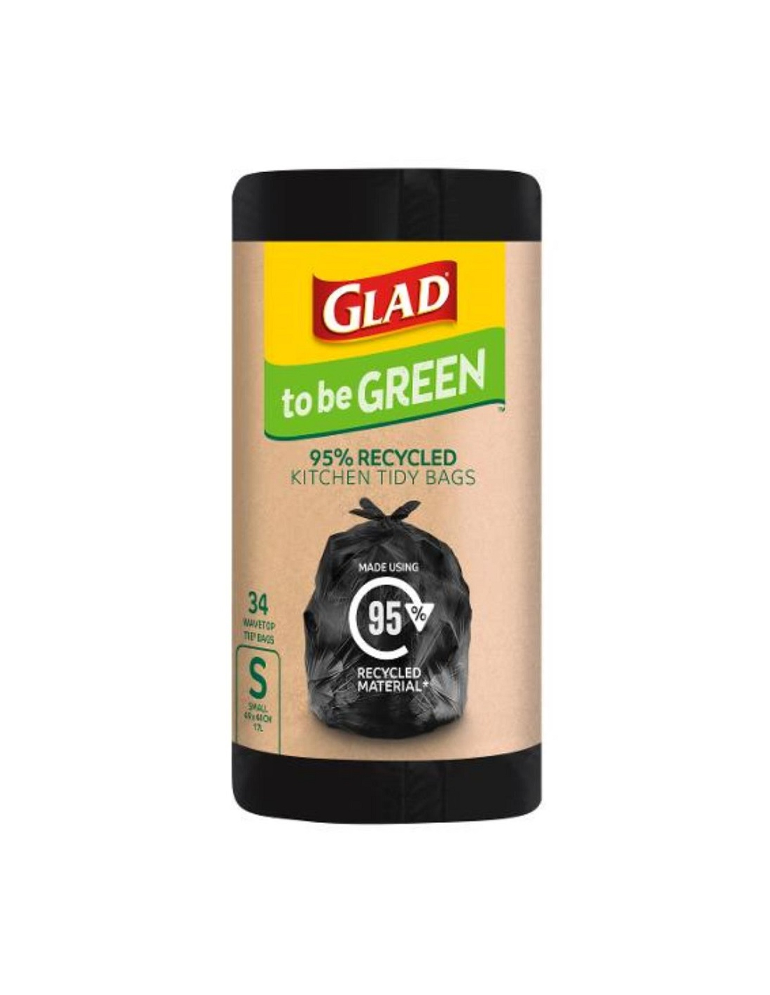 Glad Per ser Green® 95% de les bosses de cuina reciclada es fan servir amb residus de plàstic pre-consumidor que d'altra banda entraran en abocador. El reciclatge de plàstic conserva l'energia i redueix la dependència dels recursos no renovables. Aquestes bosses d'escombraries GladSistema de tancament únic Wavetop Tie®, té la força de confiança de Glad i són una opció més sostenible per mantenir les escombraries a l'abocador.