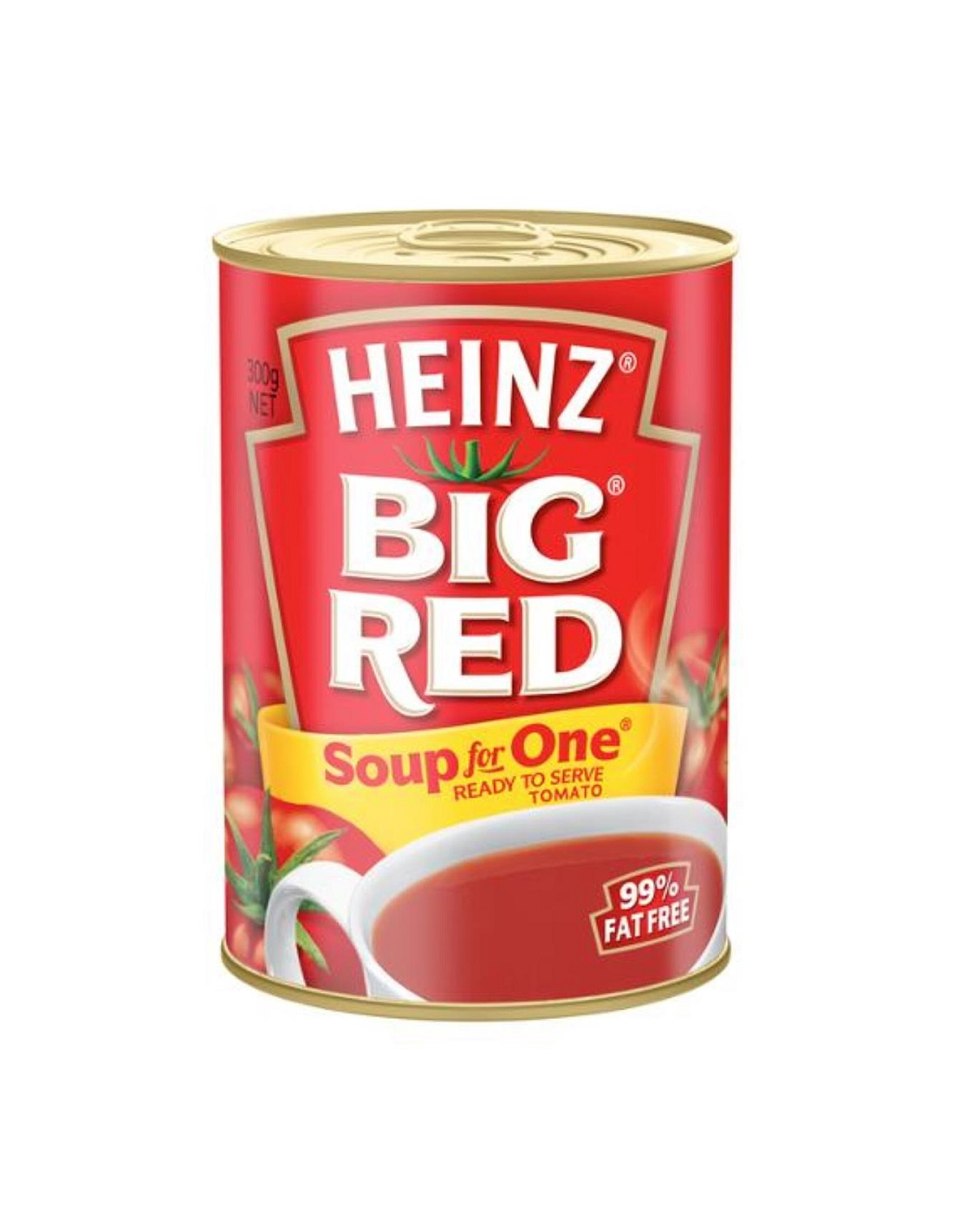 Made without artificial flavours, colours or preservatives, Heinz® Big Red® Soup for One® Ready to Serve Tomato Soup is also 99% fat free and contains 3.5 vegie serves per 300g can*. We love Heinz® Big Red® soup as a tomato base for a variety of recipes too - try it in bolognese or lasagne recipes.
