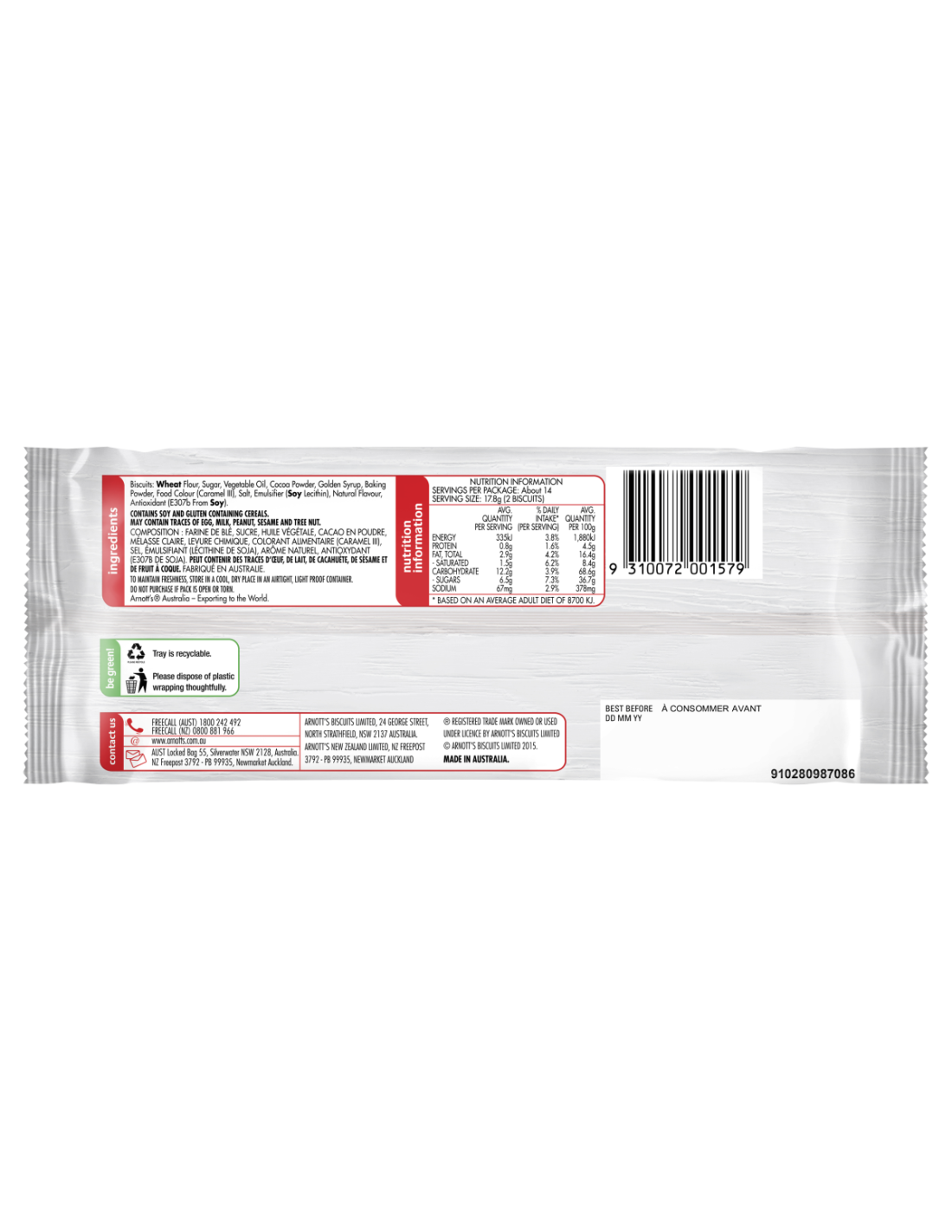 - Wheat Flour, Sugar, Vegetable Oil, Cocoa Powder, Golden Syrup, Baking Powder, Food Colour (Caramel III), Salt, Emulsifier (Soy Lecithin), Natural Flavour, Antioxidant (E307b from Soy).