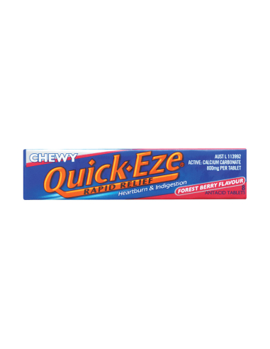 QUICK-EZE is an antacid that provides rapid relief from Heartburn & Indigestion by neutralising stomach acid fast. Heartburn & Indigestion can be triggered by a number of factors such as lifestyle, diet and pregnancy. You can help prevent Heartburn & Indigestion by avoiding spicy, fatty or greasy foods; eating in moderation; lowering your stress levels; and not eating late at night.