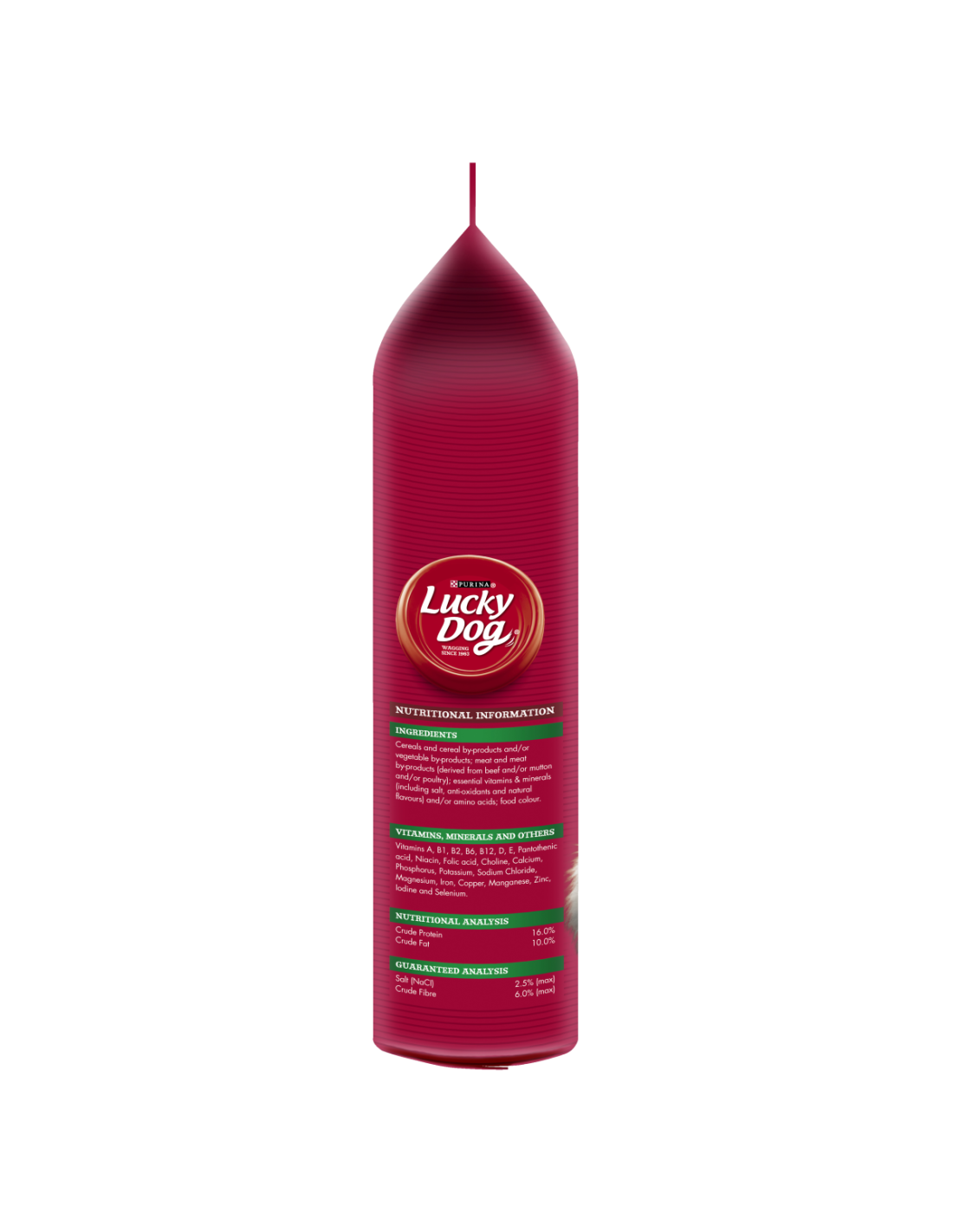 Your best mate's tail will be wagging during mealtime with PURINA® LUCKY DOG® Adult Minced Beef, Vegetable and Marrowbone Flavour dry dog food. They're sure to love the real meaty flavour in each deliciously crunchy bite-sized piece filled with nourishing goodness to keep them in optimal health and well being. This dog food is Australian made and contains 23 essential vitamins and minerals, including Omega 6 to keep their coat shiny and their skin healthy. Keep your pet in great shape with delicious meals from PURINA® LUCKY DOG® everyday.