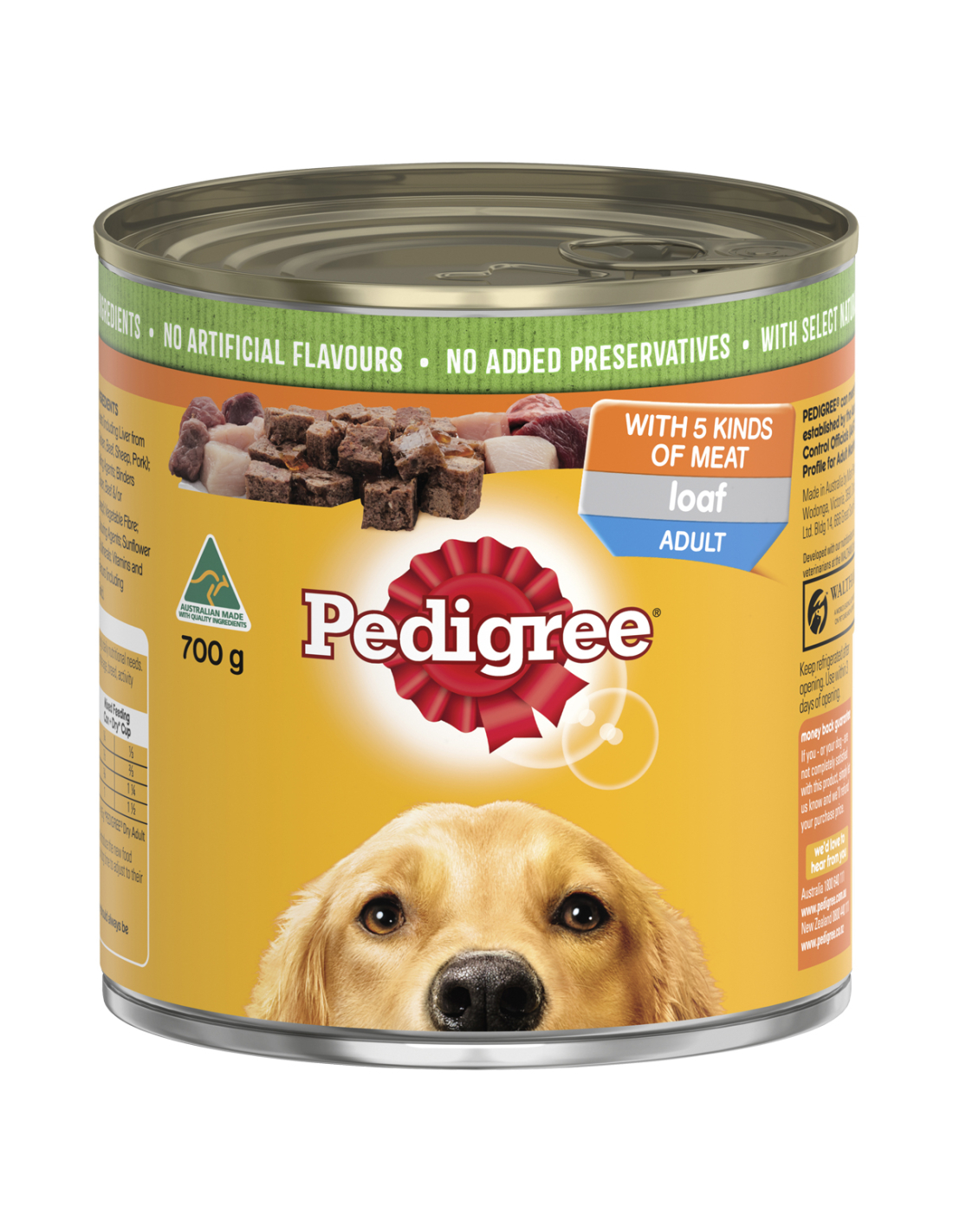 Pedigree Loaf amb 5 tipus de carn de gossos humits de carn Pot 700g és 100% completat i equilibrat amb tots els nutrients essencials que el seu gos haurà de prosperar. Fabricat amb vedella i verdures, el menjar per a gossos humits de pedigree tindrà un bon gust de maneres que es queden a la cua i alimenten el bé de maneres que es pugui veure.