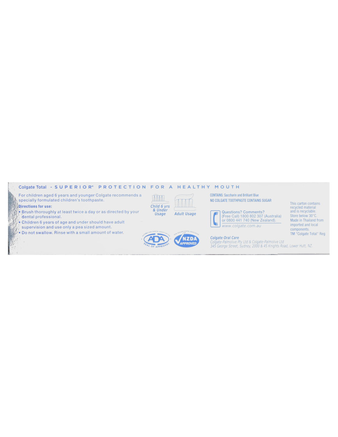 Tingueu més cura de la vostra boca Colgate Total (enfront d'una pasta de dents regulars de fluor). Funciona eliminant els bacteris de la placa a la superfície de les dents i les genives. La seva fórmula també ajuda a evitar que els bacteris de la placa reapareixin fins a 12 hores mitjançant la creació d'una barrera protectora al voltant de les dents i les genives. Amb ús regular, Colgate La pasta de dents de blanqueig avançada total proporciona els següents beneficis: