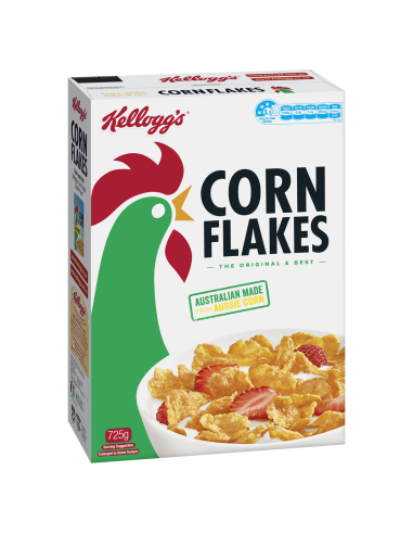 Kellogg's Corn Flakes ist das Original Kellogg'frühstück müsli. In Australien und Neuseeland ist es eine der ersten Marken, an die die meisten Menschen denken, wenn sie an Frühstück Getreide denken. Mais Flakes sind knusprige, leichte Flocken von sonnenreifem Mais, die nicht nur gut schmecken, sondern dir einen nährstoffreichen Start in den Tag geben!