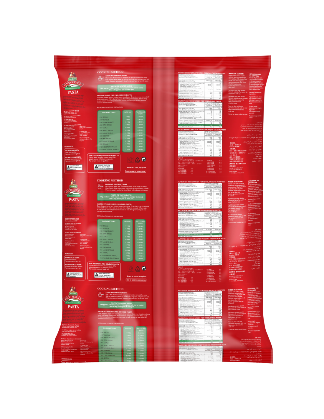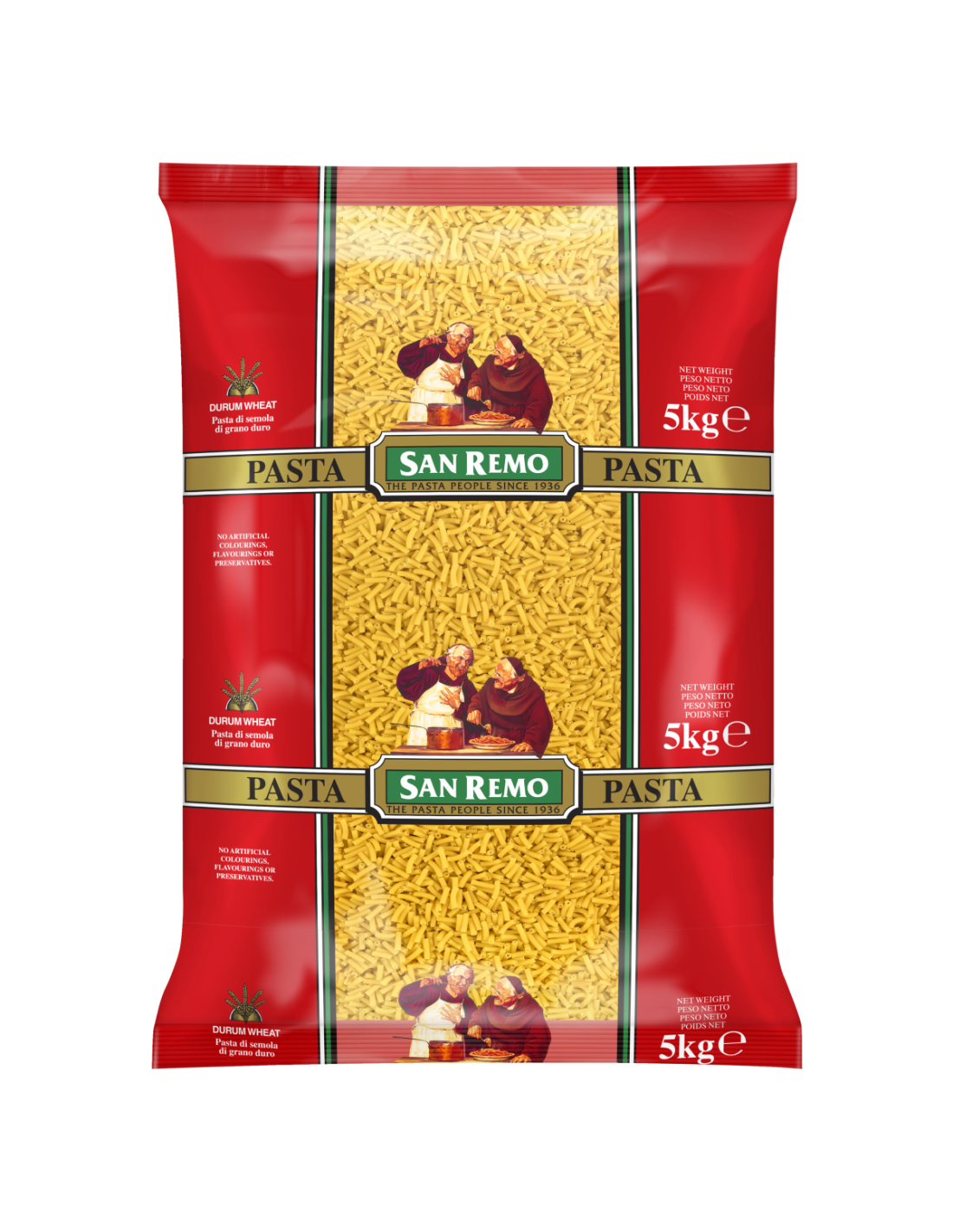 San Remo Pasta ist die beste Qualität Pasta für alle Restaurantanwendungen, die mit Durumweizen -Grieß hergestellt wurden. San Remo Pasta liefert immer konsistente und perfekte Texturen, hat eine reichhaltige golden