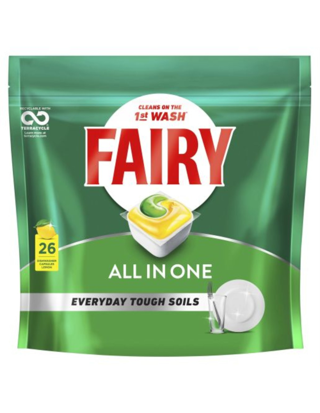Fairy Original All in One Dishwasher Tablets are jam packed with cleaning power, making them effective even on dried-on grease, fighting everyday soils on the first wash! _x000d_