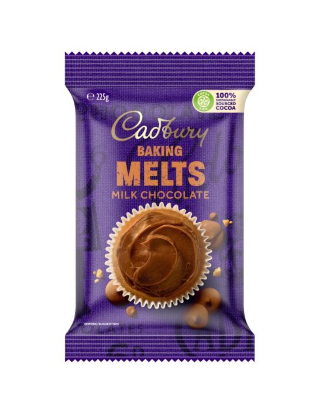 Cadbury Chocolate de leche Los derretidos son perfectos para fundirse para hacer salsas, ganache, frostings pero trabajan igual que inclusiones en pasteles, magdalenas y galletas.