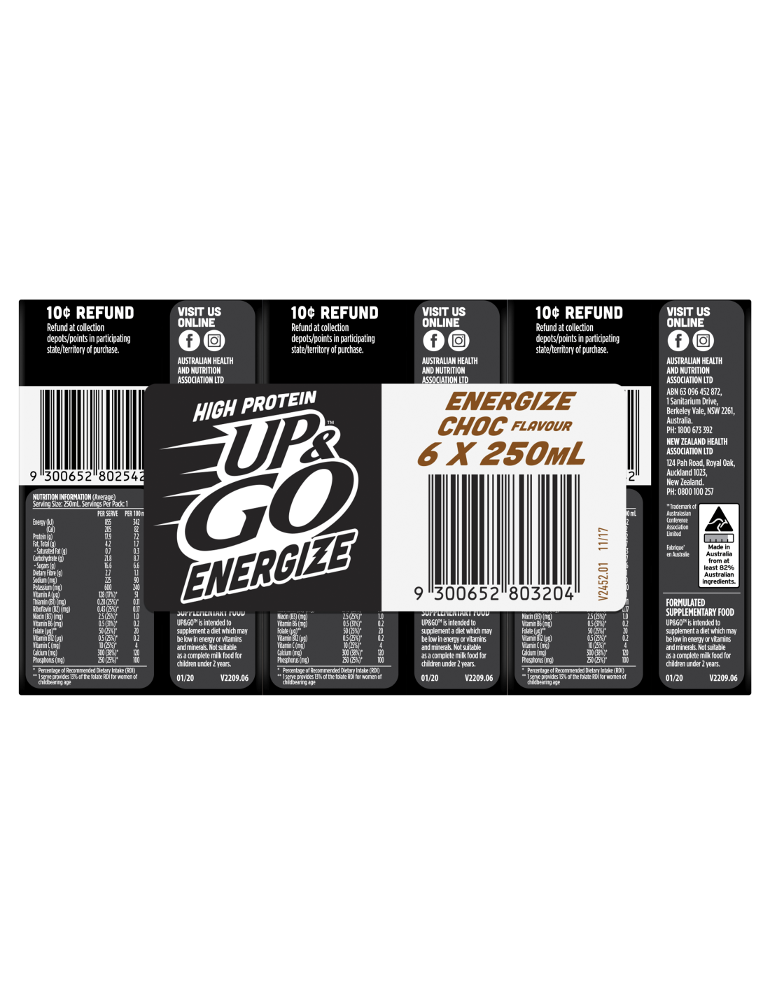 Sanitarium Arriba y Ir Energize Chocolate Liquid Breakfast 6 Pack 250ml - 1200ml x 4