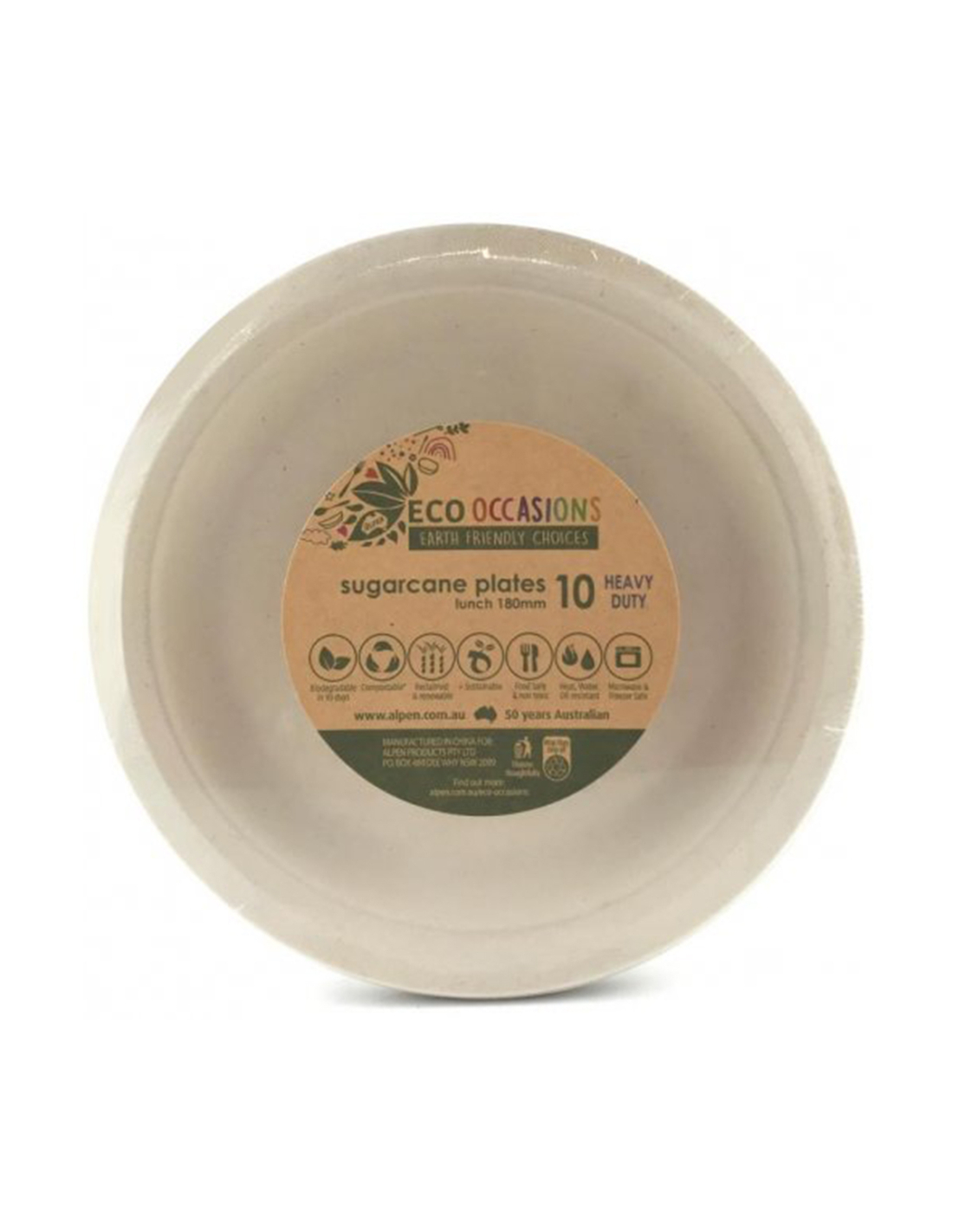 Alpen Placa de almuerzo de caña de azúcar Natural 18 cm 10 Paquete x 1