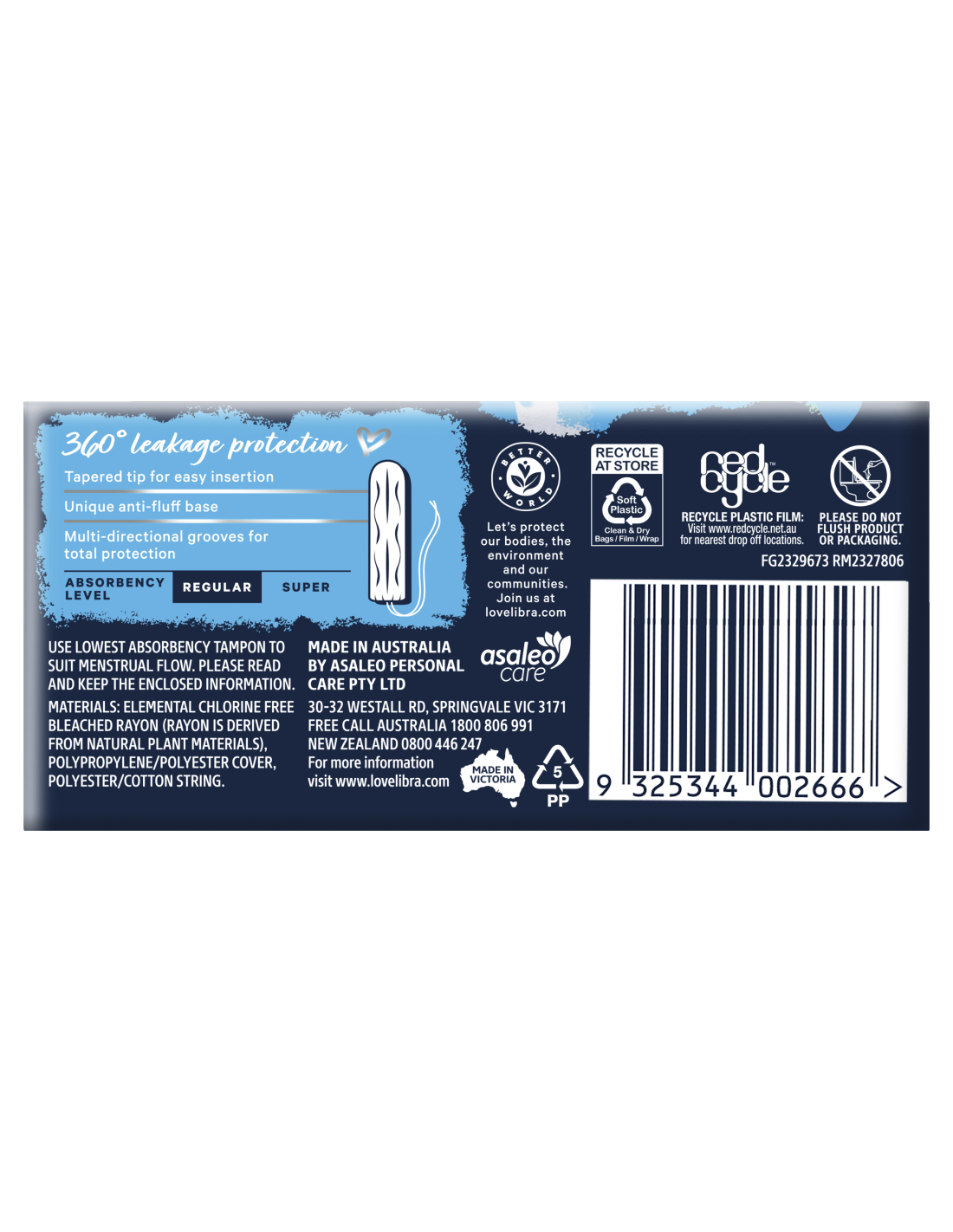 Libra Corps Les tampons sont tous les jours, le tampon go-to avec une protection à 360°. Conçu avec un maximum de confort et de protection en tête. Une pointe conique rend l'insertion plus confortable, tandis que notre base anti-fluff unique empêche le fluffage lors de la sortie de la chaîne.