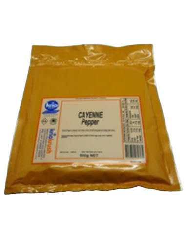 Le poivre de Cayenne est produit à partir des fruits mûrs séchés des espèces rouge brunâtre de Capsicum frutescens et / ou de l'annue que le poivre de Cayenne est orange à rouge et a un arôme hautement piquant avec un arôme de saveur chaude typique chaude