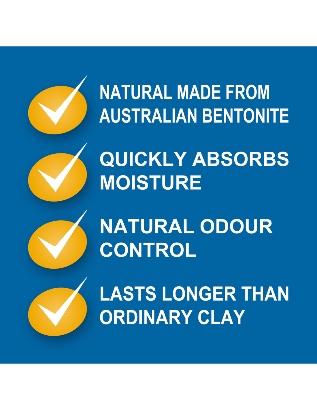 Made entirely from naturally occurring Australian bentonite, CATSAN® CLUMPING CLAY is a hygienic and practical cat litter. The clay quickly absorbs odour and moisture to form small clumps that are easily removed, leaving the tray clean and fresh. Simply top up with CATSAN® CLUMPING CLAY as required.