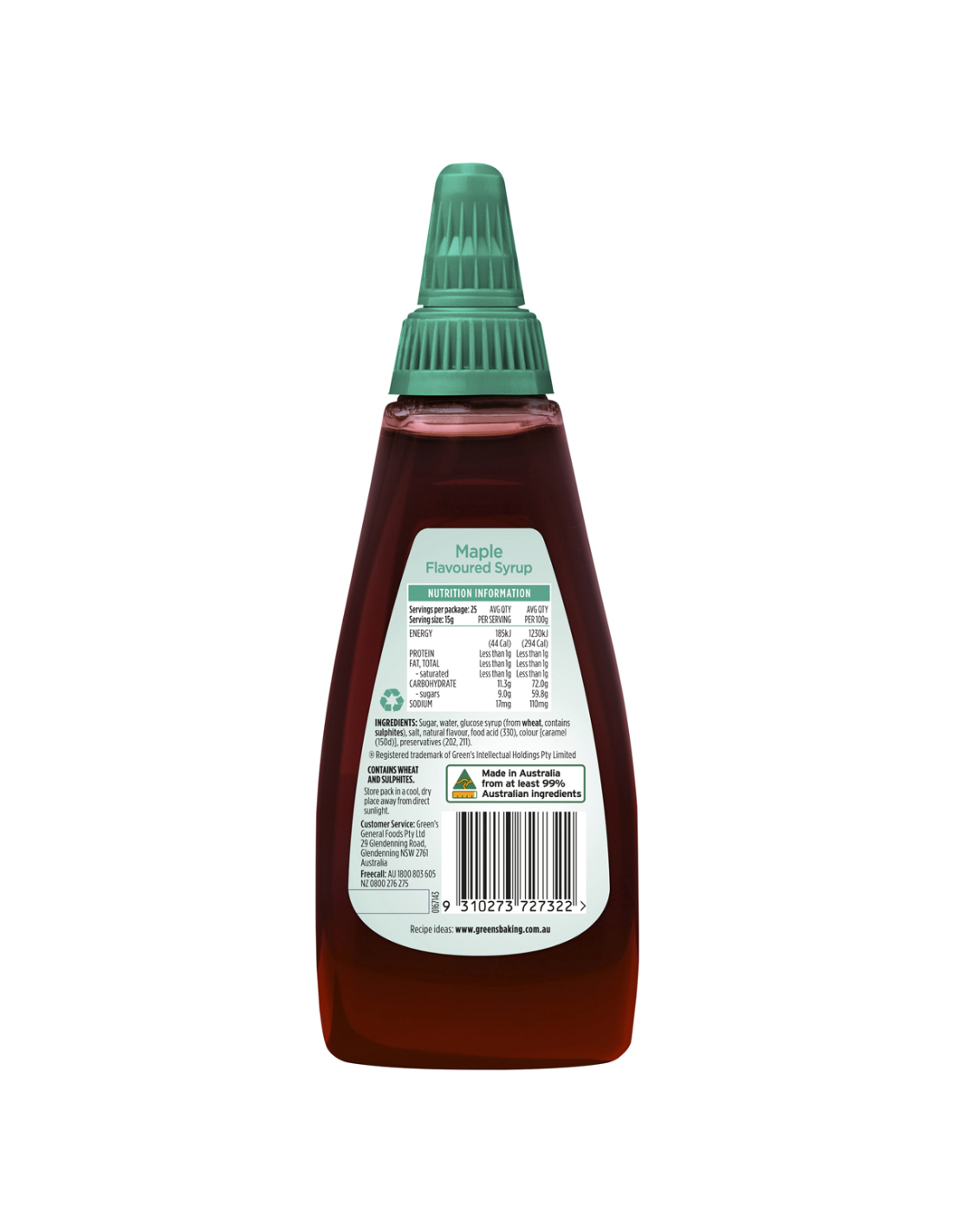 Greens Maple Flavoured Syrup no artificial colours or flavours