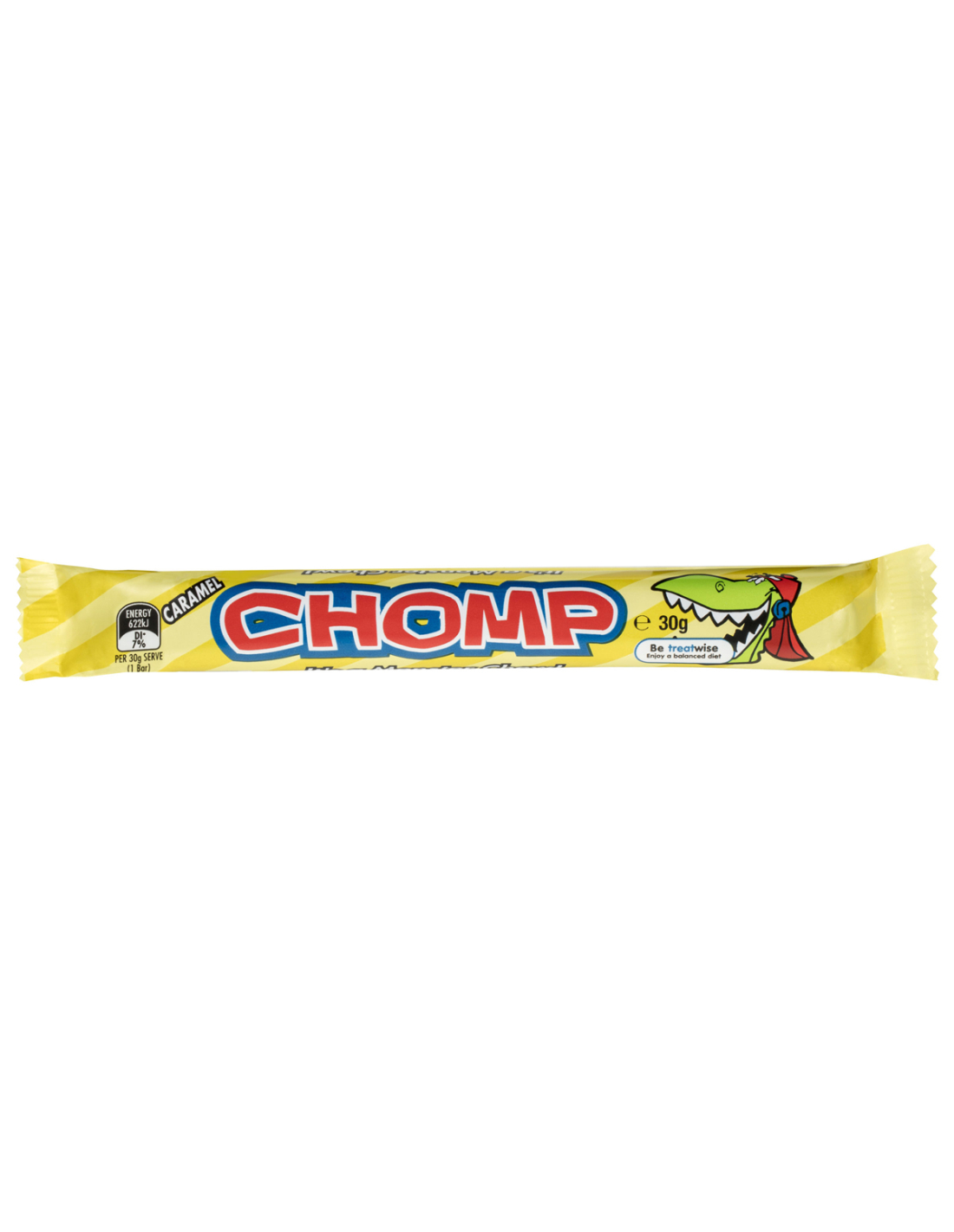 Chomp Caramel è un biscotto da wafer e caramello ricoperto di cioccolato composto un delizioso choc trappola
