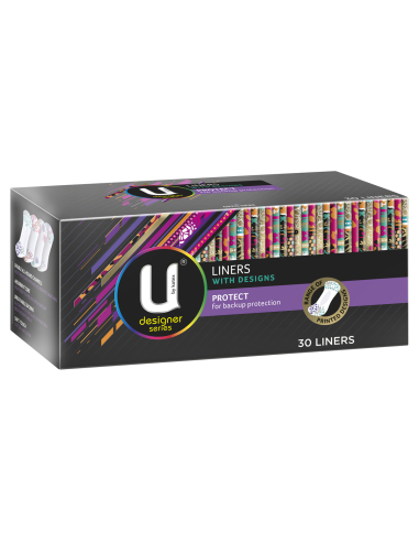 Fodere U by Kotex® Designer Protect.Disponibile in una varietà di design colorati e progettato per la protezione del backup.Di tanto in tanto, tutti possiamo fare con un po 'di backup, che si tratti di pre o post periodo o semplicemente di una precauzione "per ogni evenienza" con gli assorbenti interni.Con Designer Protect Liners, sarai coperto in qualsiasi momento del mese!