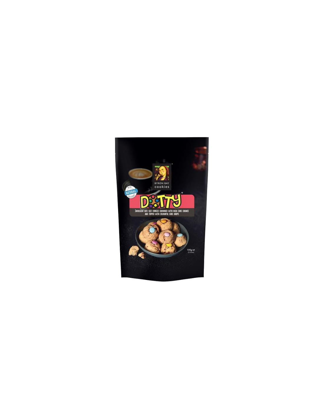 バイロン湾で完璧に焼き、そのうちの1つから作られた Byron Bay Cookie Company'Sheritage Cafe Cookieレシピ、これらのDotty®CookieBitesはすべてのクッキー愛好家を豊富に一口のミルクチルクチャンクとカラフルなドッティチョックドロップを楽しめます。 あらゆる咬傷のバイロンの味!