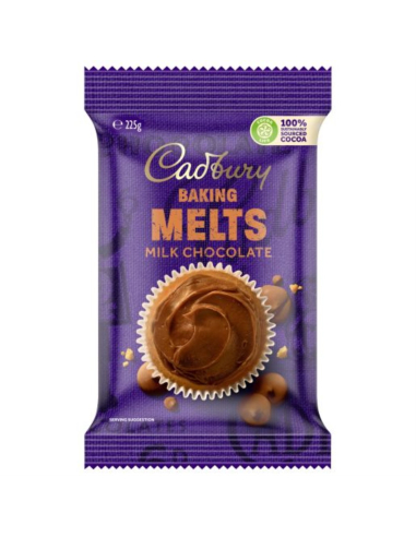 Cadbury ミルクチョコレートメルトは、溶かしてソース、ガナッシュ、フロスティングを作るのに最適ですが、ケーキ、マフィン、ビスケットに入れても同様においしくいただけます。.