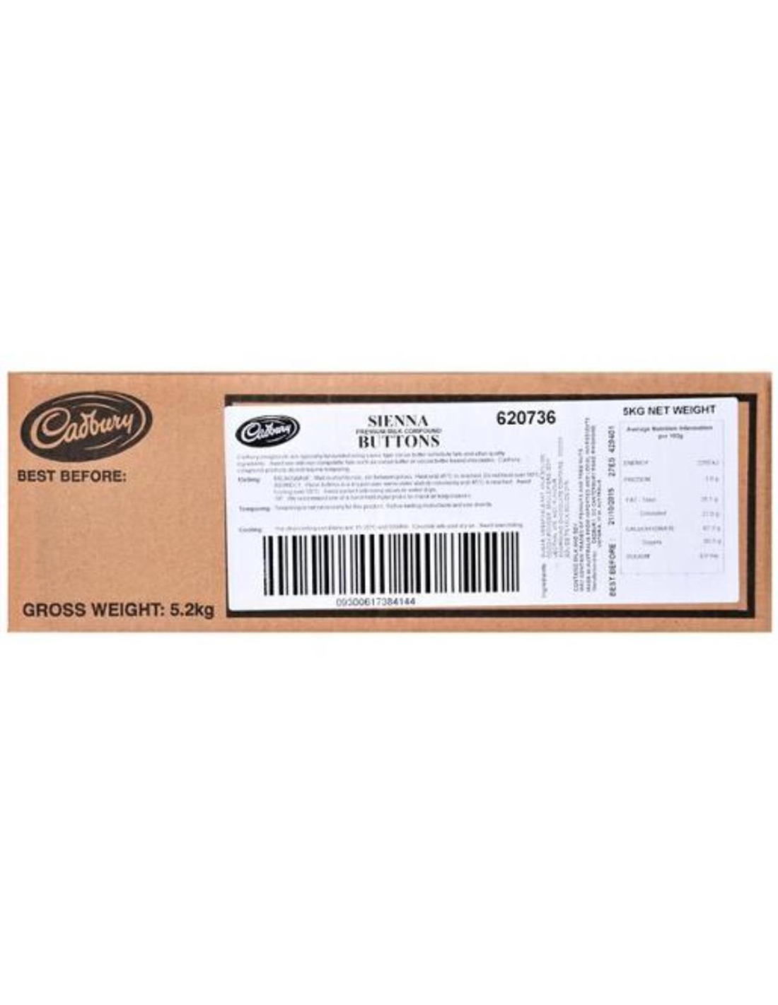 Cadbury オーストラリアシエナプレミアムミルクコンパウンドボタンボタン5kg x 1