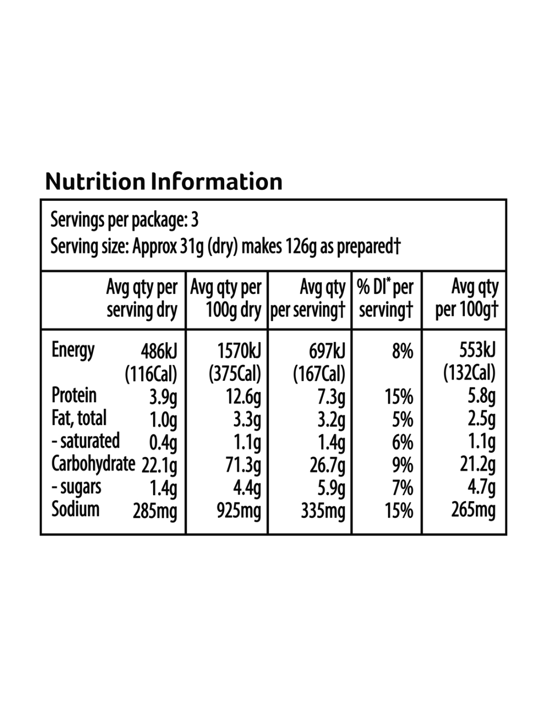 コンチネンタルには、美味しいパスタと米の風味が豊富で、家族は大好きなでしょう。. ガーリック&ハーブパスタ&ソースとこのおいしいアルフレドは、クリーミーなおいしいチーズ、ニンニク、パセリ、オレガノを組み合わせます。. ここまでは、イタリアの伝統的なレシピを使って、責任あるオーストラリア産の小麦から作られたパスタを加えています。. 新鮮で4時間乾燥し、完成した会社と若干の小牧場の堅固さを維持します。. 新鮮なミルクでパスタアルフレドを調理すると、古典的なクリーミーな味が特徴的な光の一貫性を与えます。. 私たちのコンチネンタルパスタとソースはすべて人工色、風味、またはMSGを追加していません。.