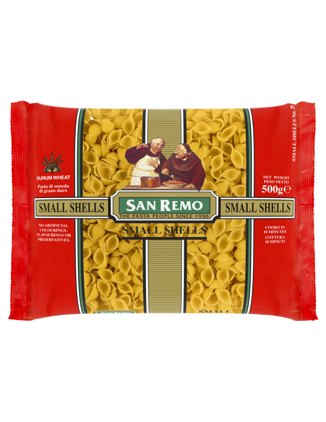 San Remo スモール シェルには人工着色料、香料、保存料は含まれていません。調理時間は 10 分です。.