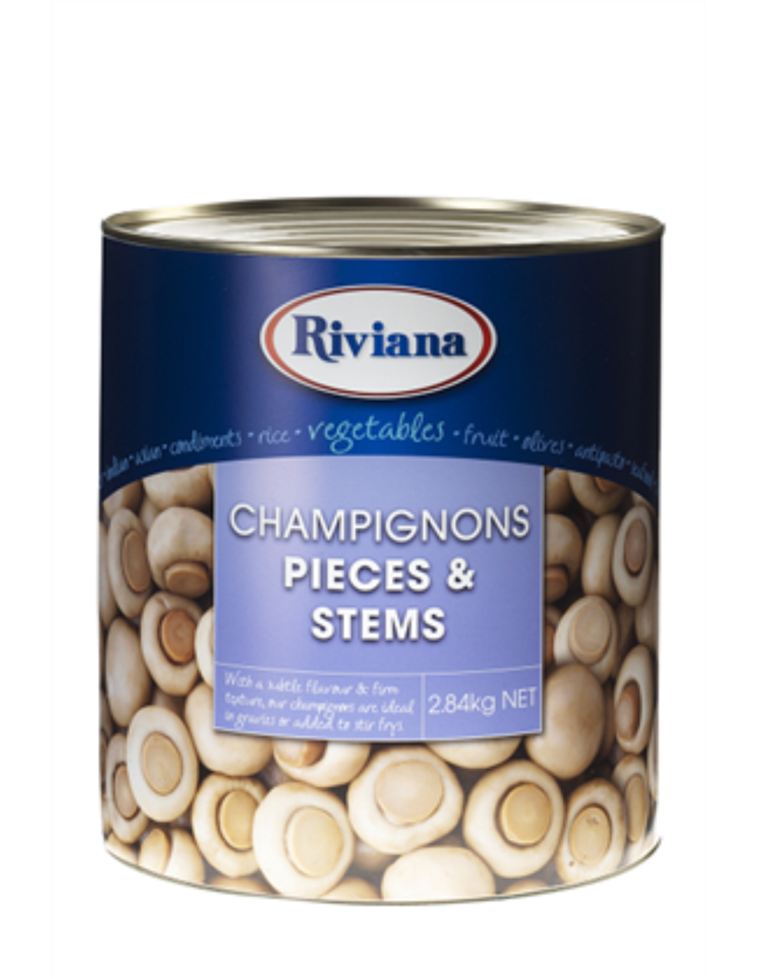 Riviana シャンピニオンの駒や茎。 これらのボタンキノコは塩水に詰められており、肉、チキン、魚、卵や野菜などの他の食品の風味を引き出すのが特に得意です。 彼らはバターとハーブで熱いか、カセロール、ソース、またはピザに追加されます。