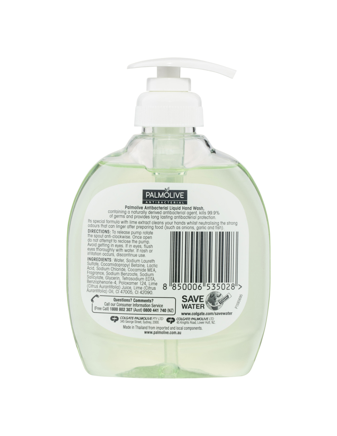 Palmolive Antybakteryjny płyn do mycia rąk, zawierający środek pochodzenia naturalnego, zabija 99,9 procent zarazków i zapewnia długotrwałą ochronę przeciwbakteryjną.