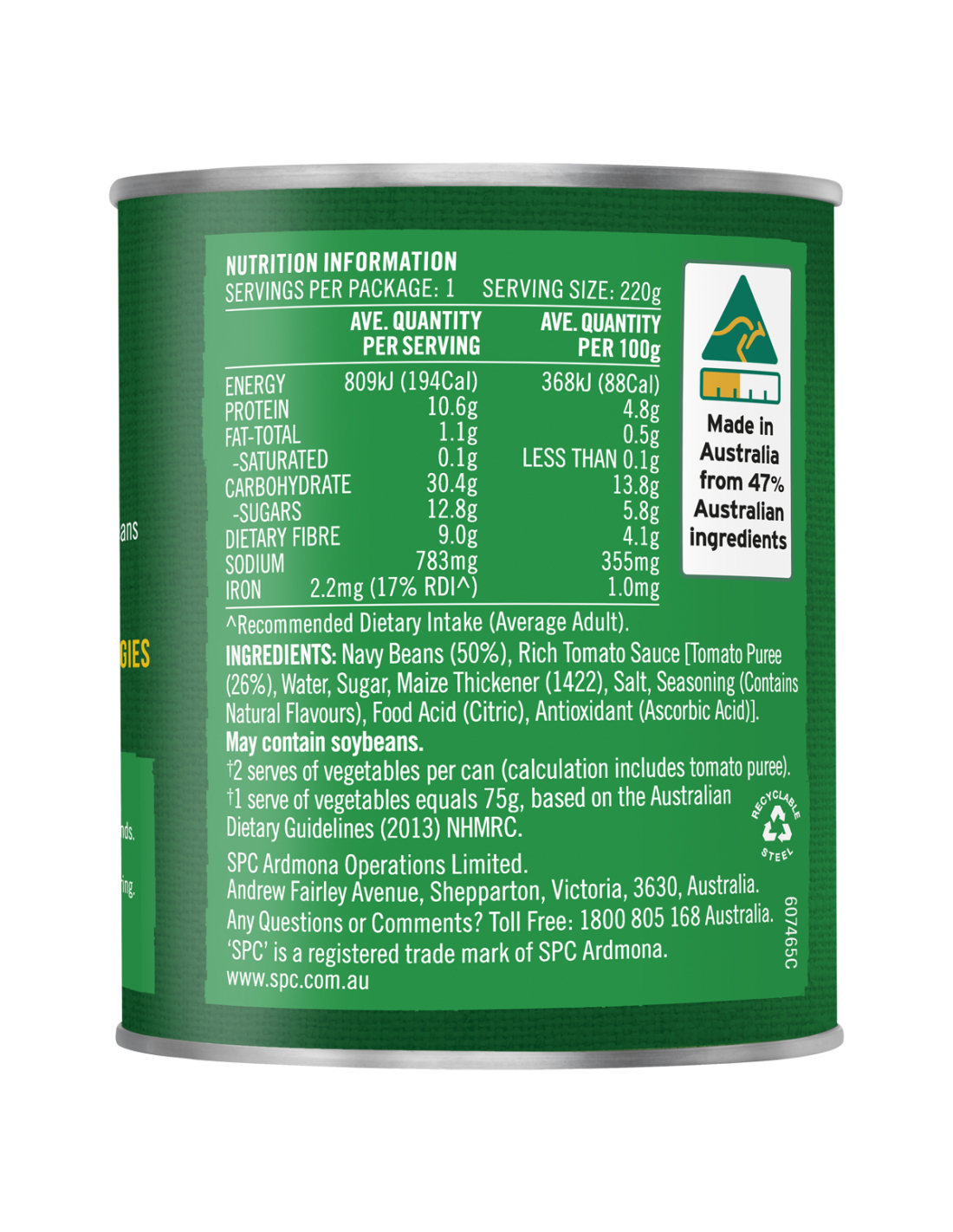 SPC焗豆浓番茄是澳大利亚制造的。